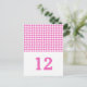 Carte postale simple mais élégante Houndstooth Table Number avec un arrière - plan motif tendance rose et blanc houndstooth. Facile à customiser avec vos détails mariages. Pour plus d'options de personnalisation, cliquez sur le bouton Customiser.