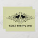 Sweet and simple Inséparable Swirls Numéro de tableau Carte postale avec silhouettes d'une paire d'oiseaux lunaires et cascades d'élégants tourbillons fleurissent sur un arrière - plan vert menthe. Cette carte de numéro de table moderne est facile à customiser avec le ou les numéros de table appropriés. Cliquez sur "Customiser" pour trouver d'autres options de personnalisation.