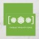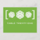 Ce Mariage D20 Dice Gamer Numéro de table Postcard en vert citron est parfait pour le couple nerdy qui est tombé amoureux d'un intérêt partagé dans les jeux de rôle et planifie un mariage à thème similaire. Ce design décalé présente un trio simple et minimaliste de dés à vingt côtés. Facile à customiser, il suffit d'ajouter le ou les numéros de table appropriés dans le champ de texte fourni. Cliquez sur "Customiser" pour trouver d'autres options de personnalisation.