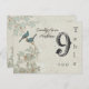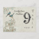 Inséparables Turquoises vintages assis sur une branche ou un graphique Mariage damassé Secret numéro de table de jardin.