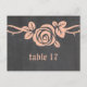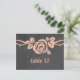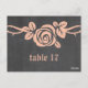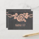 Chalet doux et joli Rose Numéro de tableau Carte postale en pêche avec un seul joli rose sur une vigne sur un tableau noir look arrière - plan. Cet élégant design à deux côtés est parfait pour un mariage de printemps ou d'été. Facile à customiser, il suffit d'ajouter le ou les numéros de table appropriés dans le champ de texte fourni. Cliquez sur "Customiser" pour trouver d'autres options de personnalisation.
