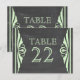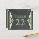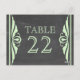 Elégante et chic Deco Chalkboard Table Numéro Carte postale avec une texture de tableau à la mode look arrière - plan et une paire de bordures vertes vert clair. Cette jolie carte de table est parfaite pour un mariage à thème art déco des années 1920. Facile à customiser, il suffit d'ajouter le ou les numéros de table appropriés dans le champ de texte fourni. Cliquez sur "Customiser" pour trouver d'autres options de personnalisation.