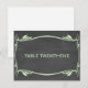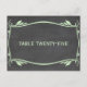Elégante et tendance Chalkboard Table Numéro Carte postale avec un look arrière - plan de tableau et une bordure en vert menthe tourbillon et feuille. Facile à customiser, il suffit d'ajouter le ou les numéros de table appropriés dans le champ de texte fourni. Cliquez sur "Customiser" pour trouver d'autres options de personnalisation.