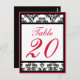 Damask With Border Table Numbers (Noir / Rouge / Blanc)...Ces damask de table élégants et classiques sont l'ajout parfait à votre décoration de réception de mariage. Ils guideront facilement les invités de votre mariage à leurs tables. Voir WindyCityStationery.com pour notre ligne complète de numéros de table "Damask With Border" dans une large gamme de couleurs, ainsi que les timbres-poste "Damask", invitations, autocollants, et plus encore.