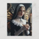 Une nonne avec des ailes papillon sur son dos tient une bougie