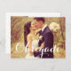 Carte Postale Obrigado Elegant White Script Mariage Photo