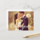 mariage classique merci modèle de carte postale avec une photo à l'avant et à l'arrière, "Obrigado" (merci en portugais) dans une élégante police de caractères en caractères blancs, et texte personnalisé remerciement message qui peut être personnalisé. Le arrière - plan blanc sur le dos de la carte peut être customisé à une autre couleur via Customiser / Edition / Arrière - plan.