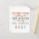 Ce design d'automne humoristique et cosy comprend la phrase spirituelle "La seule chose qui s'illumine ce week-end sont mes bougies d'automne" dans un mélange de polices audacieuses et élégantes. Le texte est aménagé de façon créative avec des tailles et des styles de police différents, ajoutant un intérêt visuel et un ton ludique. La palette de couleurs comprend des teintes chaudes d'automne comme l'orange brûlé, les verts terreux et les marron doux, qui évoquent la chaleur et le confort de la saison.