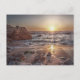 Montre une plage rocheuse. Le soleil touche l'horizon, sur le point de se coucher. Le traitement de HDR ajoute de la couleur, de la profondeur et de l'étrangeté à toute la scène.
