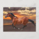 Une photo d'un cheval Thoroughbred galopant sur une plage au lever du soleil, exposée sur une carte postale. — Photo protégée par le droit d'auteur de la photographe Christina Spiegeland.