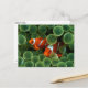 Carte animale montrant une jolie paire de clownfishe ocellaris. L'ocellaris clownfish (Amphiprion ocellaris), également connu sous le nom de faux percula clownfish ou poisson clown commun, est un poisson marin appartenant à la famille Pomacentridae. On sait que les Amphiprion ocellaris ont une longueur d'environ 110 mm. Comme beaucoup d'autres espèces de poissons, les femelles sont cependant plus grandes que les mâles. Le cycle de vie de l'Amphiprion ocellaris varie selon qu'ils résident à la surface ou au fond de l'océan. Lorsqu'ils éclosent initialement, ils résident près de la surface. Cependant, quand Amphiprion ocellaris entre dans le stade juvénile de la vie, ils se déplacent vers le bas pour trouver refuge d'un anémone hôte. Une fois qu'ils trouvent leur anémone, ils forment une relation symbiotique avec eux.