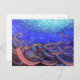 Tableau original d'une pieuvre subaquatique colorée glissant sur le fond de l'océan.