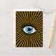 Illustration de l'oeil bleu hypnotique de l'oeil bleu avec rayons de soleil doré foncé qui rayonnent tout droit et en motif tourbillonnant contre un arrière - plan noir. Talisman pour l'auto-hypnose.