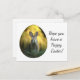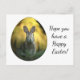 La jolie photo d'un lapin sur un oeuf avec le message "Espoir que vous ayez une Pâques heureuse !", est présentée sur cette carte postale de vacances. Une façon mignonne d'envoyer des salutations de Pâques à la famille et aux amis!