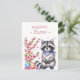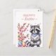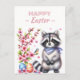 Carte postale de Pâques avec un raton laveur aux fleurs de cerisiers et oeufs de Pâques. Personnalisable .