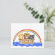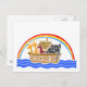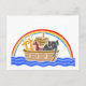 C'est un design vraiment sympa qui présente l'arche de Noé avec des animaux à bord. Il y a un grand arc-en-ciel coloré dans l'arrière - plan.