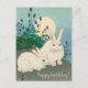 Nouvelle carte de vœux d'anniversaire NewParkLane - Carte postale d'anniversaire d'art japonais ancien, avec une gravure sur bois couleur japonaise vintage du début du XXe siècle (vers 1920 - 1930) par Ohara Koson représentant deux lapins, avec des fleurs violettes dans un paysage au clair de lune. Avec un vœu d'anniversaire, dans une typographie élégante et script en rose pâle.