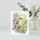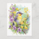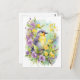 Carte Postale Oiseau à l'aquarelle avec des fleurs violettes et