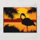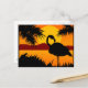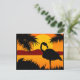 Carte postale colorée avec coucher de soleil et scène d'oiseau. Beau art aux couleurs orange et noir. Ajouter votre propre message