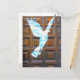 Carte postale avec l'oiseau de René Magritte, dans le style du surréalisme, constitué de ciel et de nuages sur une porte en bois à Séville.