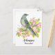 Carte postale ornée d'un mockingbird gris mou perché sur une branche de fleurs de pommes roses fleuries illustrées d'encre et peintes d'aquarelle. Inspiré par l'oiseau d'Etat et la fleur d'Etat de l'Arkansas.