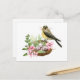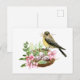 Carte Postale Oiseau en aquarelle sur le nid avec des fleurs ros