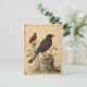 Carte Postale Oiseau Rouge et Corbeau de Style Ancien
