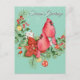 Carte Postale Oiseaux cardinaux perchés sur la couronne de Noël