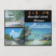 Cette carte postale combine trois peintures originales de paysages traditionnels okinawaïens des rues du village à un paysage marin. Peint professionnellement par un maître calligraphe (shihan en japonais) résidant à Okinawa. Un de nos produits les plus vendus !