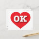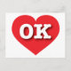 Cette carte postale est dotée d'un coeur rouge vif contenant les lettres coques en haut blanc et audacieuses OK, l'abréviation officielle pour Oklahoma, l'état le plus tôt. Le verso de la carte postale est vide, en attendant vos sentiments manuscrits ou texte personnalisé.