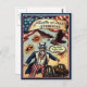 Carte de style vintage de l'Oncle Sam allumant du fusible sur le canon, avec le texte de balon : "Dis bonjour à mon petit ami"