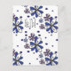 Envoyez un splash de couleur à travers le courrier avec cette carte postale Open Bloom en gras. Doté de pétales dessinés à la main surdimensionnés aux accents de points bleus, violets et blancs éclatants, ce design gai est sûr d'égayer n'importe quelle boîte aux lettres. Parfait pour des hellos rapides, des remerciements ou des notes d'encouragement. Open Bloom est un motif floral ludique et à haute énergie qui déborde de personnalité. Avec de grandes fleurs dessinées à la main en bleu, blanc et violet frappant avec des détails pétales tourbillonnants, le design rayonne le mouvement et la joie. Des points indigo éparpillés ajoutent du rythme et du contraste à l'arrière - plan blanc vif, donnant à l'oeuvre une touche dynamique et moderne.