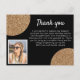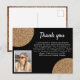 Élégante Carte de vœux Anniversaire Merci avec paillettes or noir. Paillettes dorées fausses sur fond noir avec une photo.