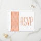 Carte postale Chevron Border Mariage Response, moderne et chic, avec une simple bordure motif en chevron orange et blanc. Ce design élégant donnera le ton à un mariage élégant. Facile à customiser, il suffit d'ajouter les détails de votre mariage dans les champs de texte fournis. Cliquez sur "Customiser" pour trouver d'autres options de personnalisation.