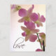 Orchidées mauve molle contre un arrière - plan crème avec amour dans la police script. Carte postale idéale pour les wedding showers, enregistrer la date, annonces fiançailles et plus encore.