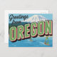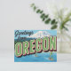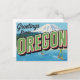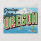 Capture the stunning natural beauty of the Pacific Northwest with this retro "Greetings from Oregon" postcard. This vintage large-letter design beautifully showcases the state's famous diverse landscapes, featuring a snow-capped mountain (likely Mt. Hood), dense forests, and windsurfing on a lake or river. Perfect for outdoor enthusiasts, Oregon residents, adventure lovers, souvenir collectors, and anyone who appreciates classic Americana travel art and the PNW aesthetic. Send a unique note or display it as a piece of framed nostalgia.