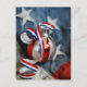 Un seul ornement de Noël avec un ruban rouge, blanc et bleu enroulé et un fond de vieux drapeau. Parfait pour un Noël patriotique et totalement personnalisable pour que vous puissiez le personnaliser comme vous le souhaitez !