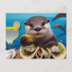 Une loutre appréciant les tacos d'huîtres et une margarita amusant IA produit art
