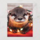Carte Postale Otter de Noël mignonne et festive enveloppé dans l