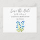 Oubliez-moi pas bleu aquarelle, fleurs de jardin, Mariage Enregistrer la date cartes postales. Jardin. Fleurs bleues. Décor de lavande. Peinture de lavande. Image aquarelle originale de l'artiste Monika Howarth. Oublie-moi pas le design.