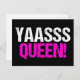 Ouiiiii Reine. Yass Reine est une citation drôle de culture populaire utilisée par les filles impertinentes et les drag queens divas. Une carte postale mignonne noire et rose vif.