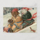 Une magnifique illustration vintage en hiver - deux ours en ballade de joie - en luge à travers la neige!