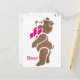 Carte Postale Ours Brown floral avec Cravate de cabot rose
