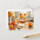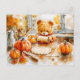 Carte Postale Ours en peluche préparant une tarte au potiron