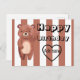Carte postale d'anniversaire ours personnalisé rayures mignonnes.