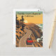 Promenez-vous pittoresque le long de l'emblématique Pacific Coast Highway en Californie avec cette carte postale de voyage de style vintage. Avec ses routes sinueuses le long de falaises spectaculaires, son décapotable de croisière et l'océan Pacifique au coucher du soleil, cette illustration capture l'esprit du voyage routier américain ultime. Un incontournable pour les collectionneurs comme pour les amateurs de voyage.