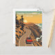 Faites une balade panoramique le long de l'iconique Pacific Coast Highway en Californie avec cette carte postale de voyage de style vintage. Avec des routes sinueuses le long de falaises dramatiques, une décapotable qui roule, et l'océan Pacifique au coucher du soleil, cette illustration capture l'esprit de l'ultime road trip américain. Un incontournable pour les collectionneurs et les amateurs de voyage.