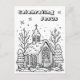 Colorer la carte postale avec un thème de Noël. Fête de Jésus. Jolie église avec vitrail et arrière - plan enneigé.