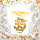 Ce design saisissant met en valeur un "35" doré radieux, symbolisant la sagesse et la célébration. L'écriture élégante ajoute une touche personnelle, tandis que les confettis scintillants complètent l'aspect festif. Personnalisez le texte pour le rendre unique !