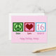 La carte d'anniversaire personnalisée parfaite pour une adolescente. Paix Amour Douce 16 avec votre texte personnalisé en rose.